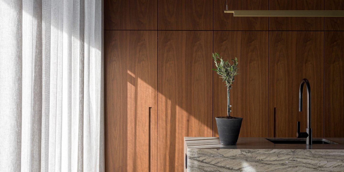 „Fólk er kannski minna fyrir kolsvart þessa dagana og skjannahvítar borðplötur,“ bendir Berglind Berndsen innanhússarkitekt á þegar hún er spurð hvort einhver tiltekin trend séu á útleið. „Fólk vill frekar brúnleitan og náttúrulegan efnivið eins og ljósa eik, hnotu og reykta eik og velur frekar borðplötur með miklum æðum og lífi. Fólk hefur verið óhræddara við að nota áberandi stein, sem er svo frábært.“