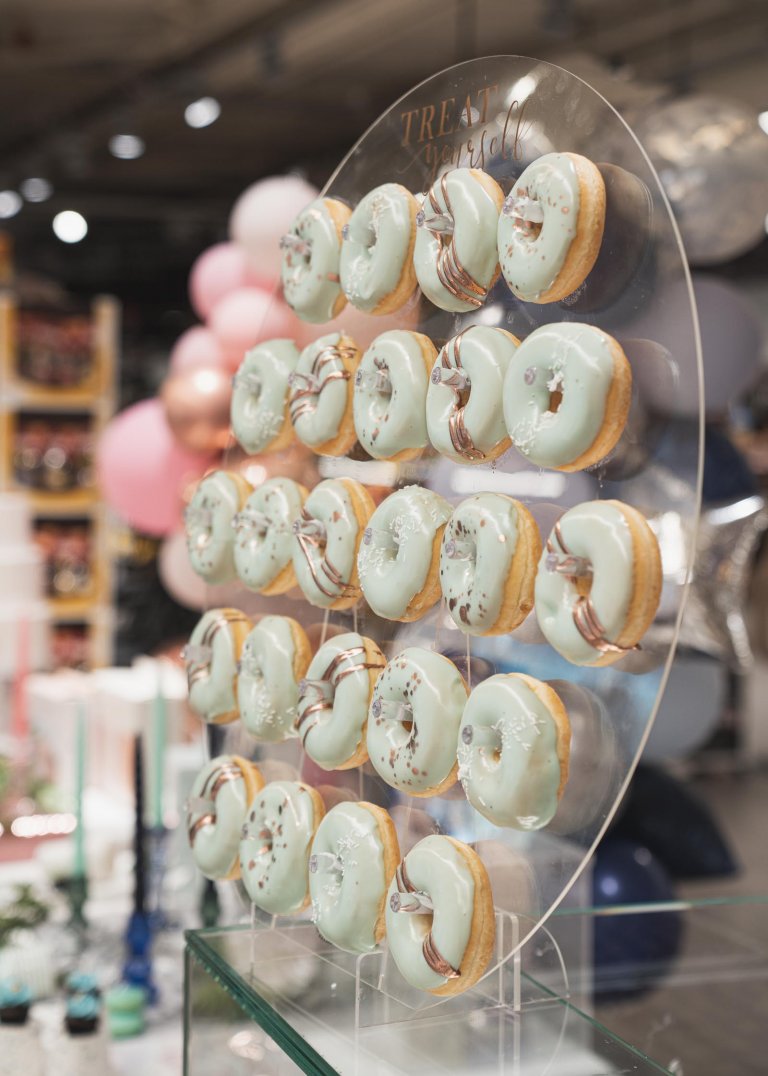 Hjá Hagkaup er hægt að kaupa kleinuhringastand, fallega renninga á veisluborðið og litlar ljósaseríur.