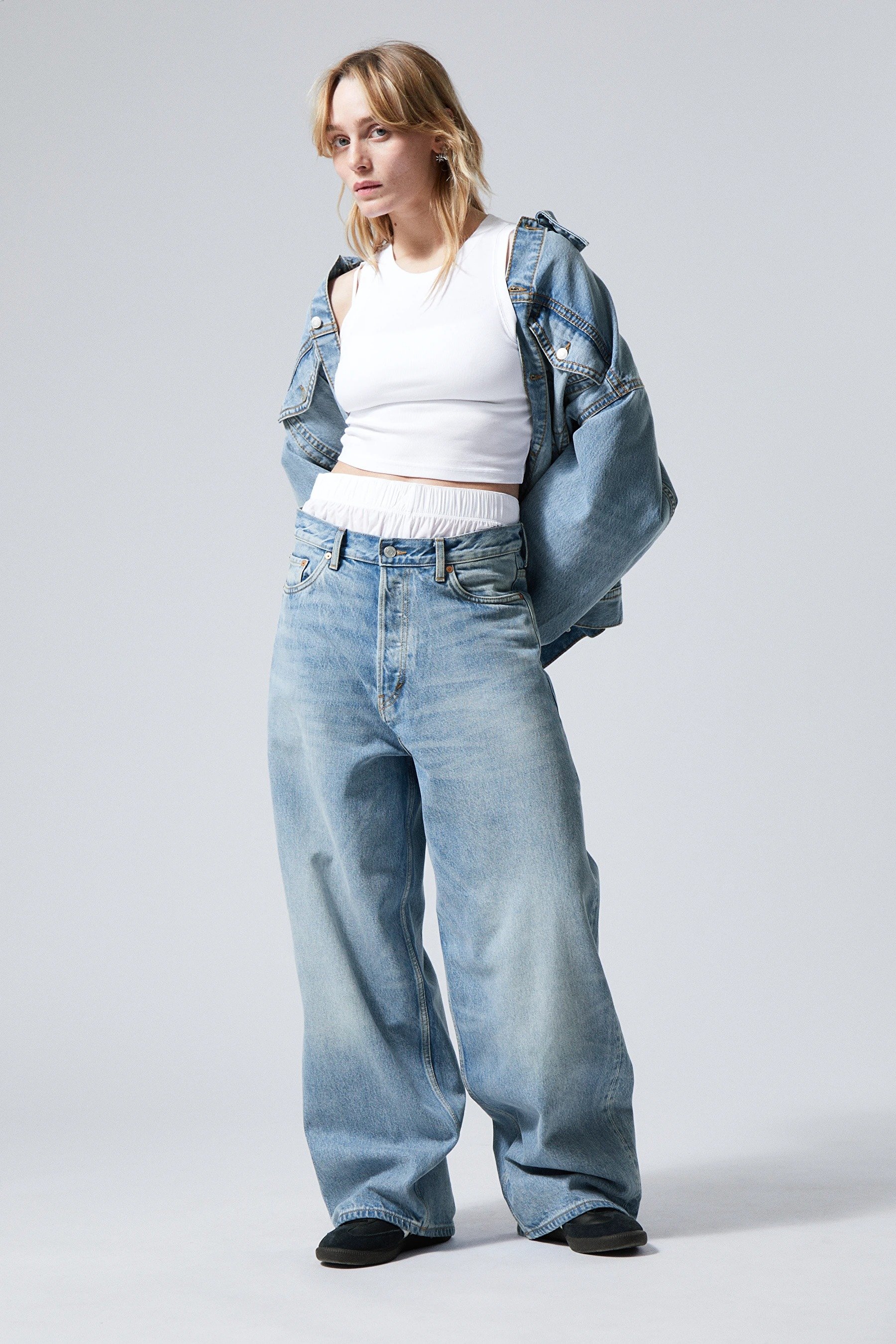 Últra víðar gallabuxur sem oft og tíðum líta út fyrir að vera mörgum númerum of stórar eru að trenda. Sitt sýnist hverjum en þið eruð allavega með á nótunum, því víðari, því betri í vor!
