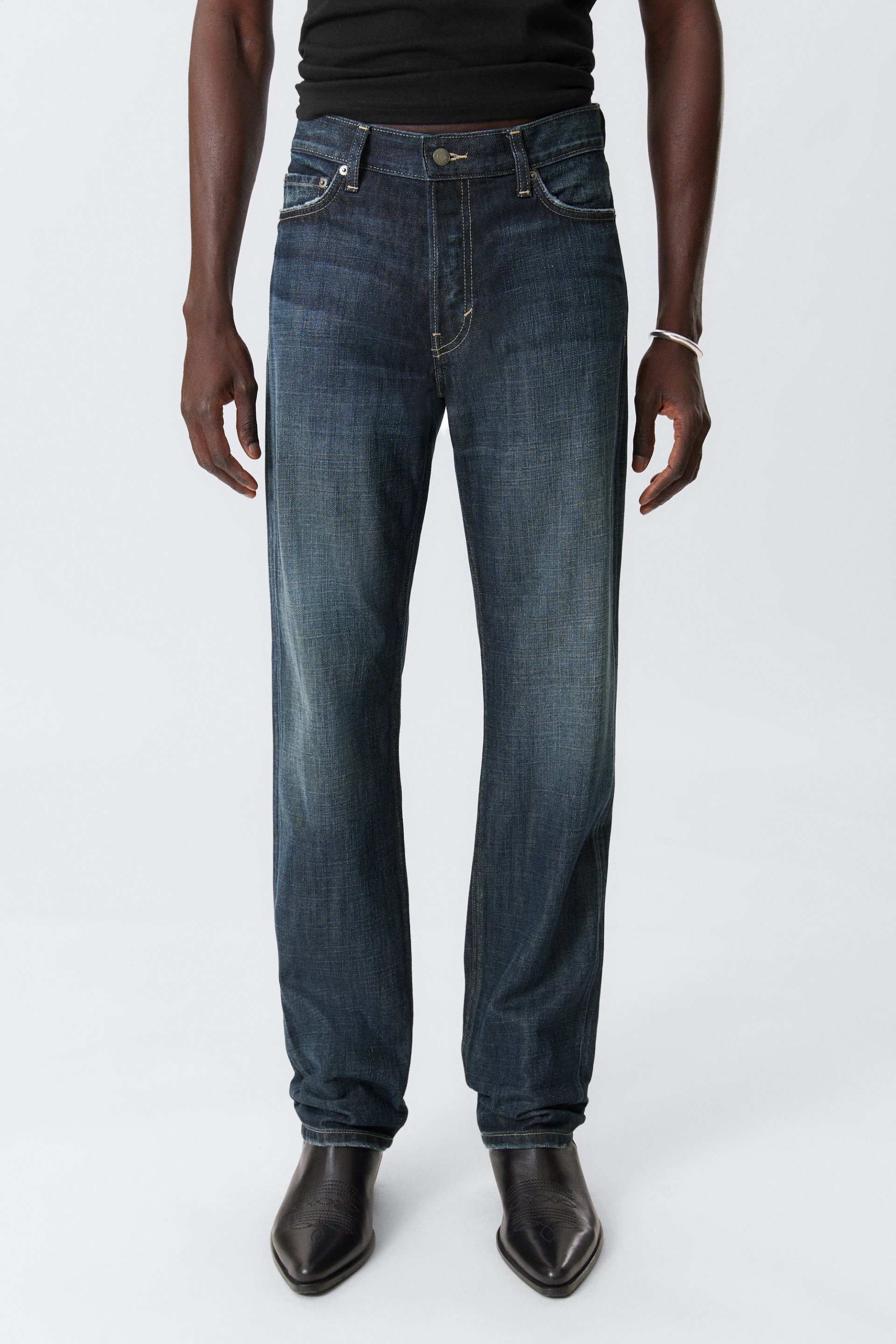 Klassískar gallabuxur í dökkbláu